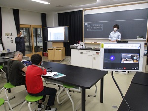 にじ組6年生の理科「水溶液の性質」の学習です。今日の学習は、炭酸水には二酸化炭素が溶けているのか、実験方法を考えようというものでした。今日は出席者2名とオンラインで1名の合計3名での学習でした。みんなで実験方法を考える学習なのに、多様な考えや意見が出てくるのかなと心配でしたが、担任の前川先生が上手に子供たちから考えを引き出し、多様な実験方法を考えることができました。オンラインで参加した子も、自分の考えをしっかり発言できました。少ない人数だからこそできる方法ですが、広げていきたいと考えています。子供たち、がんばりました!