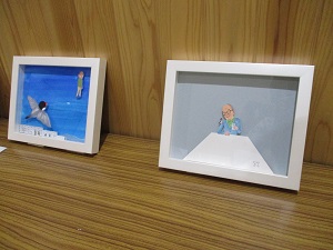 地下1回のギャラリーで、多摩市在住の絵本作家 小亀たく氏の絵本の原画展示が、昨日から行われています。「じーさんとピーポッポ」という絵本の原画です。とても温かく柔らかい感じの絵がとてもとてもすてきです。保護者の皆様にもぜひ見ていただきたいと思い、昨日メールでお知らせした通り15:00~16:30の時間にご覧いただけるようにしました。14日(金)には片付けになってしまいますので今日と明日しかありませんが、ぜひご都合をつけてご覧いただければと思います。
