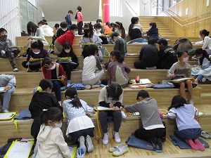 今日は、昨日ご紹介した絵本作家の小亀たく様をお招きして、4年生を対象にワークショップが行われました。まずは、小亀さんの絵本「じーさんとピーポッポ」の映写を見ました。その後に小亀さんに絵本についてのお話を聞き、子供たちからの質問にも答えていただきました。とても朗らかなお方で、どんな質問にも丁寧に答えられていたのが印象的でした。次は、子供たちの出番。「4ページの絵本をつくろう」のワークショップです。小亀さんからつくり方のこつを教えていただき、思い思いに自分の作品に挑戦していました。子供たちの発想は、楽しいですね!子供たちの作品、ぜひご覧になってください。とても貴重な機会となりました!後半の写真は、武井先生の図工の授業の様子です。今年の4月に新しく学校の先生になった武井先生です。日々、教材研究を重ねてがんばっています。今日は、多摩市教育委員会の指導主事の先生に授業を見ていただき、ご指導を受けました。5年1組の子供たちもがんばりました。