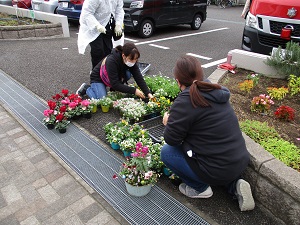 学校に消防車がやってきました。3年生の消防署の学習です。本当なら多摩消防署に出かけるのですが、コロナのためここ数年は学校に来ていただいて実施しています。3クラスが3つのコーナーに分かれてローテーションしていきます。消防車や消防服のことを学ぶコーナー、AED体験を通して人命救助を学ぶコーナー、消防署全体の仕事をビデオを見て学ぶコーナーです。どのコーナーでも興味津々で一生懸命学ぶ姿が見られました。子供たち、よくがんばっていました。消防署の皆様、ありがとうございました。花壇では、PTCAのお母さま方が花の植え替えをしてくださっていました。いつも学校に彩りと潤いを与えてくださっています。雨がパラパラしている中、本当にありがとうございました。