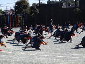 様々な対応が入り、今日はあまり写真が撮れませんでした。唯一写真を撮れたのが、3年生と5・6年生の練習の様子です。3年生は隊形移動も上手にこなし、仕上がってきたなという感じがしました。5・6年生は合同練習です。2学年が揃うと迫力が違います。腰をがっちり落とし気迫を感じられるようになってきました。子供たちも先生たちも、疲れがたまっています。土日にしっかり休んで来週に備えてほしいです。現在の天気予報では、土曜日の天気はよさそうです。たくさんたくさん努力した成果を、たくさんの保護者の皆さまに見ていただきたいと願っています。