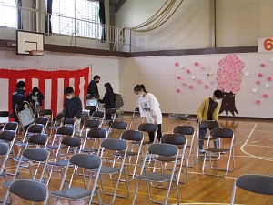 3・4時間目には、5年生が明日の卒業式のために一所懸命最後のお仕事をがんばりました。体育館や昇降口、廊下、階段…、6年生が通るところの掃除をとってもしっかりやりました。本当にまじめに取り組む姿に、成長を感じるとともに6年生へ向けての自覚が伝わってきました。明日の卒業式、よろしくお願いします。