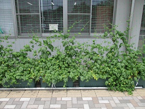 今日はジトっと蒸し暑く、過ごしづらい1日でした。体育や休み時間が終わるごとにミストを出し、少しでも涼む子供たちがいっぱいでした。学校では熱中症にならないために、私が測定したWBGTの数値を、委員会の子供たちが掲示し、注意喚起をしてくれています。こまめな休息、水分補給を行い、安全第一で教育活動を行っていきます。緑の写真は、校長室前にあるゴーヤのグリーンカーテンです。気温が上がり、急に成長が早くなりました。すでに小さい実がついています。夏真っ盛りの時期に大きなゴーヤが実っているのを見るのが楽しみです。