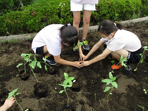 昨日の委員会活動で栽培委員の子供たちが、花壇にヒマワリの苗を植えてくれました。夏休みに入る頃には、大輪の花が花壇いっぱいになっているといいですね。一人一苗も順調に育っており、すでに家庭への持ち帰りが始まっています。子供が持ち帰ったら、ぜひご家庭でも育ててください。今年も咲いたヒマワリの写真を募集しています。学校の代表メール(HPにリンクが貼ってあります。)に画像データを添付して送ってください。よろしくお願いします。今日は学校公開が行われました。密を避けるため学級の半分ずつの参観でしたが、保護者の皆様のご協力により混乱なく実施することができました。子供たちは見に来ているお父さんやお母さんを見て、嬉しそうだったり緊張していたりしていました。今週の金曜日には学校公開2日目、土曜日はセーフティ教室、引き渡し訓練があります。ご参加どうぞよろしくお願いします。