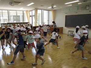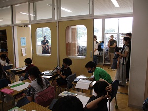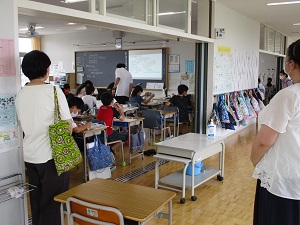 記録的な速さで梅雨が明け、連日猛暑となっています。昨日、今日の暑さ指数は運動中止の危険レベルまで上がり、中休みの遊び、校庭・体育館での体育は、中止となりました。特に今日の暑さはひどく、昼休み前に測定したところ校庭の気温は40.8℃!!!子供たちの下校と重なっていたので、水分を摂ってから学校を出ること、マスクを外して下校することを指導しました。写真は、3年生理科「ゴムや風の力」の学習です。ゴムで車を走らせ、引き具合によって変わる距離を測定していました。教室で軽く体を動かしているのは1年生。校庭・体育館が暑くて使えないため、冷房かけた部屋で行っていました。4年生は社会科のまとめです。自分のノートに自分の考えや学んだことを整理していました。6年生は、算数のテスト。こっそり「難しい?」と聞いてみると「うん。うん。」と頷いていました。いい点がとれるといいですね。図書室で読み聞かせを聞いているのは、にじ組の4~6年生。とても落ち着いて聞いていました。最後の2枚は、1年生の朝顔です。見事に生長しつるがぐんぐん伸びています。毎朝たっぷり水やりをしていますが、あまりの暑さにややぐったり気味でした。明日も暑くなりそうです。今日の疲れを明日に残さないよう、早く休むようにしてください。