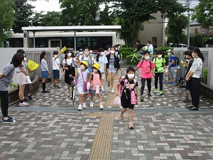 6年生が八ヶ岳から帰ってきました。少し遅れての出発だったそうですが、道路がすいていて予定時刻通りに到着しました。子供たちは疲れた顔をしていましたが、よっぽど楽しかったのか満足そうな顔をしていました。家に帰りましたら、ぜひ子供たちのお土産話を聞いてください。今日はゆっくり休んで、疲れを取ってほしいと思います。6年生は、明日10時登校。いつも通り登校しないように気を付けてください!!お出迎えに来てくださった保護者の皆様、ありがとうございました。