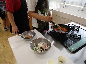 6年生が家庭科で調理実習を行いました。献立は野菜炒め。難易度がかなり上がりました。でも、子供たちは手順もばっちりで、手際よく作業を進めていました。手慣れた様子で炒めたり、洗い物をしたりする姿から、家でもお手伝いでやっているんだろうなあと思いました。ぜひ、ご家庭でも6年生手作りの野菜炒めを作ってもらってください!向日葵の苗の持ち帰りが進んでいます。袋に丁寧に入れて嬉しそうにしている子供たち。家庭で愛情をもって、願いを込めて育ててください。写真、待ってます!