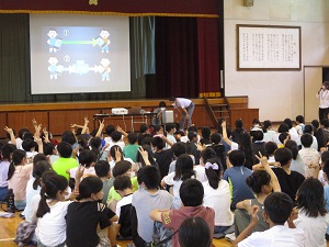 今日は土曜授業日。とても暑い1日でした。でも、子供たちは「暑い~!」と言いながらも元気いっぱい。元気が一番です。今日は、セーフティ教室が低・中・高学年ごとに行われました。講師の先生は、多摩市ソーシャルワーカーの岸本恵子先生です。PCやスマホ、SNS、オンラインゲーム等に潜む危険について、動画やアニメ、クイズ等を取り入れながらとても分かりやすくお話していただきました。こちらが意図しないうちに巻き込まれてしまうのが、これらの危険の特徴です。まだ小学生です。買い与えて終わりではなく、ご家庭での管理をお願いします。子供たちは暑い体育館で、静かに話を聞くことができました。とても立派でした。日・月と休みになります。しっかり体の疲れをとるようにお願いします。