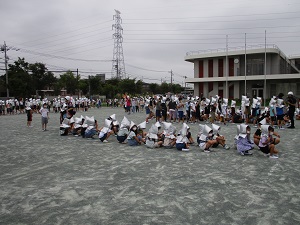 今日は、9月の避難訓練が行われました。登校してすぐの8時30分開始でした。いつ起こるか分からない地震です。どんな時でも「お・か・し・も」の約束を守って整然と避難できるよう、時間を変えて実施しています。特に朝の時間は、欠席の子や登校が遅れている子の把握が人数確認の際に必要になります。先日、メール配信でもお伝えしたように、欠席・遅刻の連絡をお願いします。子供たちの避難行動の様子は立派でした。おしゃべりが少なく、しっかり話を聞けていました。