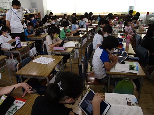 今日の午前中、9月の学校だよりでご紹介した「学校運営協議会」が開催されました。委員の皆様にここまでの多摩二小の教育活動を説明しました。委員の皆様から、コロナ禍の中でも体験を重視して、心を育んでいるのがすばらしいとの声をいただきました。また、LGBTQ+について意見交換を行いました。貴重なご意見は今後の教育活動に活かしてまいります。次の写真は、3年にじ組大久保学級の研究授業の様子です。今年度、多摩二小では国語の物語文を題材として研究を深めています。今年度第1回の研究授業でした。「ちいちゃんのかげおくり」の主人公、ちいちゃんの気持ちの変化の読み取ります。子供たちは、多くの先生方が参観している中、じっくり考え自分の考えをしっかり発言できました。成長が見られる場面が多く、とても嬉しくなりました。