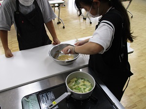 今日は、中休み中の避難訓練が行われました。いつ起こるか分からない地震です。様々な時間を想定して行っています。先生がいて指示を出してくれる授業中とは違って、休み時間にいた場所によって避難経路等が変わってきます。正しく避難するためには、自分自身で判断することが求められるのです。今日は、休み時間中ということもあり、おしゃべりが多く残念でした。自分の命は自分で守るを基本に、これからも安全指導を重ねていきます。後半の写真は、5年生の調理実習の様子です。今日はお味噌汁を作りました。どの子も落ち着いて手際よく作業していました。ぜひご家庭でも、お味噌汁作りを子供たちに任せてみてはどうでしょうか。きっと美味しいお味噌汁を作ってくれることと思います!(私もいただきました!「とても美味しかったです。ありがとう!)