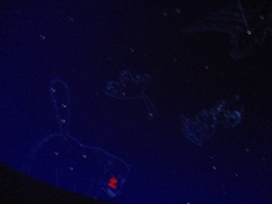 体育館に大きな球体が出現しました!これは、4年生が行った移動プラネタリウムの外観です。中に入ると、こんな感じです。でも、暗くてうまく写真が撮れませんでした。画面を最大限に明るくしたら少し見られるかもしれません。子供たちは本格的なプラネタリウムに少し興奮気味でしたが、星の話や星座の話を聞き、関心をもったようでした。ご家庭でも学習に合わせて。星を見る機会がつくれるといいですね。子供たちだけでは危ないので、保護者の皆様よろしくお願いします。