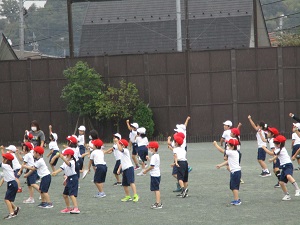 様々な対応が入り、今日はあまり写真が撮れませんでした。唯一写真を撮れたのが、3年生と5・6年生の練習の様子です。3年生は隊形移動も上手にこなし、仕上がってきたなという感じがしました。5・6年生は合同練習です。2学年が揃うと迫力が違います。腰をがっちり落とし気迫を感じられるようになってきました。子供たちも先生たちも、疲れがたまっています。土日にしっかり休んで来週に備えてほしいです。現在の天気予報では、土曜日の天気はよさそうです。たくさんたくさん努力した成果を、たくさんの保護者の皆さまに見ていただきたいと願っています。