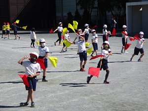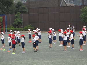 今週から運動会特別時間割が始まりました。運動会の練習割当に沿って校庭・体育館で練習がスタートです。3時間目は1年生の割当。ダンスの練習はこれまでも取り組んできており、校庭では位置決めを行っていました。1年生にとっては、間隔をあけて並ぶのは難しいのですが、先生の指示に通りに並ぶことが上手にできていました。並んだところで一度踊ってみます。ウェーブ、とてもきれいにできていましたよ。踊り終わったところで雨が……。外での練習は天候に左右されてしまいます。運動会まで天候に恵まれ、精一杯自分の力を発揮できるといいですね。ご家庭でも子供たちを励ましてあげてください。