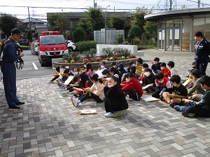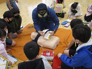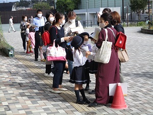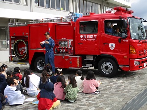 学校に消防車がやってきました。3年生の消防署の学習です。本当なら多摩消防署に出かけるのですが、コロナのためここ数年は学校に来ていただいて実施しています。3クラスが3つのコーナーに分かれてローテーションしていきます。消防車や消防服のことを学ぶコーナー、AED体験を通して人命救助を学ぶコーナー、消防署全体の仕事をビデオを見て学ぶコーナーです。どのコーナーでも興味津々で一生懸命学ぶ姿が見られました。子供たち、よくがんばっていました。消防署の皆様、ありがとうございました。花壇では、PTCAのお母さま方が花の植え替えをしてくださっていました。いつも学校に彩りと潤いを与えてくださっています。雨がパラパラしている中、本当にありがとうございました。