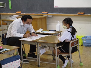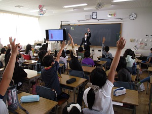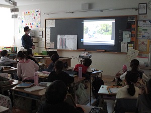 今週の月曜日から、栄養教諭になるために教育実習の先生が4年1組に来ています。栄養教諭の教育実習は、1週間だけなので、今日が最終日になります。3時間目には、4年1組で栄養指導の研究授業が行われました。「バランスのよい朝ご飯を考えよう」という学習です。主食、主菜、副菜、汁物・飲み物の4つを入れて、バランスのよい献立を考えたり、朝ご飯を毎日しっかり食べるよさを考えたりと、楽しく学習することができました。教育実習で学んだことを生かし、すてきな先生になってほしいと思います。