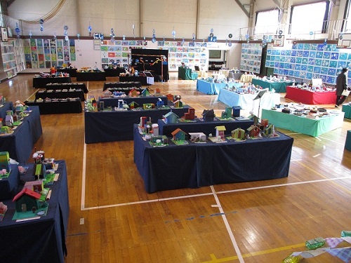 作品の展示、飾り付けなどの準備が終わり、今日から展覧会が始まりました。体育館いっぱいに作品が並ぶと圧巻です。じっくり見て回ると、努力の跡が見られるところやすてきな発想、思わず声をあげてしまうような作品がたくさんあります。早く保護者の皆様にも見ていただきたいです。(そう思って写真のサイズを大きくしました。)明日の午後1時30分からです。今日は昨日よりも暖かくなりましたが体育館は冷えますので、重ね着やカイロなどでご対応ください。スリッパ等と脱いだ靴を入れる袋を忘れないようお持ちください。