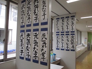 明日から「校内書写展」が始まります。本来なら保護者の皆様にご来校いただき、間近で子供たちの力作をご覧いただきたいところですが、新型コロナウィルス感染症の状況がよくないため、苦渋の決断で保護者の皆様のご来校はなしとさせていただきました。本当に申し訳ありません。後日、担任からロイロノートを使用して貼られている作品を写真で配信されますので、ご覧いただきたいと思います。ホームページにも少しずつ紹介していきますのでご覧ください。今日はにじ組の子供たちの作品です。(低学年の硬筆は、写真だと小さすぎて見えなくなってしまいます。ごめんなさい。掲示してある雰囲気をお楽しみください。)