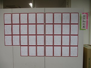 昨日に引き続き、校内書写展です。1・2年生と5・6年生の作品です。写真が小さくてすみません。(1・2年生のは文字が見えないですね…。)ぜひご家庭で掲示してください。よろしくお願いします。さあ、明日からは展覧会が始まります。保護者の皆様は、27日(金)の午後と28日(土)にご覧いただけます。体育館は冷えますので、暖かくしてお越しください。皆様のご来場をお待ちしております。