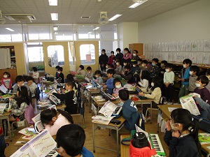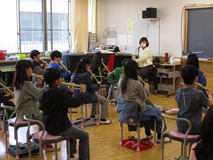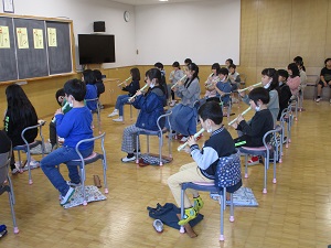 2月も後2日になりました。しばらく寒い日が続いていましたが、明日から数日は4月の暖かさになるようです。寒暖差で体調をくずさないようお気を付けください。学校では、今週の木曜日に迫った「6年生を送る会」へ向けての練習に、どの学年も一生懸命に取り組んでいます。最初の写真は、1年生。その後教室を回ると、2年生は音楽の授業(交換授業でした。)、6年生はテストに取り組むところでした。次の時間の体育館は、主役の6年生。さすがの演奏でした。凛々しい6年生の姿を目に焼き付けておきたいと思います。最後の写真は、にじ組です。1~6年生が混ざった中での演奏は難しそうですが、がんばっていました!本番が楽しみです!