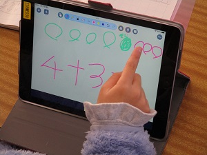 1年生の算数です。「自分の前に4人、後ろに3人います。列に並んでいるのは何人でしょう。」という問題です。4+3=7ではなく、正解は8人です。そうです、自分の入れるのを忘れてはいけません。授業では、どうやって式を立てるかをタブレットを使って自分の考えを表し、考えの共有をしていました。みんな上手に〇を使って説明していました。後半3枚は今日で最終日となった、2・4・6年生の持久走の様子です。みんなたくましい走り!とってもよくがんばっていました。
