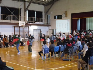 4年生、「10才おめでとうの会」が行われました。たくさんの保護者の皆様が見守る中、緊張しながら入場してきた子供たち。これまでの自分の発表では、各学年のエピソードを寸劇や踊りで表現しました。今の自分では、「女々しくて」の合奏。力強い迫力のある演奏でした。保護者の方からのアンコールもあり、2度目の演奏では、小竹先生主導のもと、急遽保護者の方に簡単な動きが伝授され、会場が一体となって楽しみました。これからの自分では、将来の夢を語る子供たちがスライドで流され、保護者の方は、じっくり見入っていました。保護者の方からの言葉では、サプライズのプレゼントが手渡されました。(中味はなんだったのでしょうか?)4年生の子供たちが自分たちで創り上げた温かいすてきな会になりました。ここまで育ててくれた両親に感謝、そしてこれからもよろしくお願いします。最後の2枚の写真は今日の2時間目、リハーサルの時の様子です。5人の「かおなし」が、演奏している子供たちの前で踊っています。そう、踊っているのは先生方です。子供たちに先生たちからのおめでとうです。(何度も打ち合わせをし、練習していましたよ。)すてきですね!