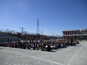 今日は毎月1回行われる避難訓練が行われました。今日の設定は、【地震・休み時間・予告なし】。子供たちにとっては難しいですが、1年間毎月行ってきたことの集大成です。緊急地震速報の放送が入り、各自身を守ります。揺れが収まったら校庭に避難です。少しおしゃべりが多かったのですが、予想していたよりも短い時間で人数確認を終えました。高学年の子供たちの中には、困っている低学年の子供に声をかけて誘導してくれる子もいました。立派です。校長先生からの講話の後、学級で集まり改めて行動を振り返っている様子も見られました。この時期になると3.11に思いが巡ります。備えあれば憂いなし。ご家庭でもご確認ください。