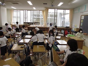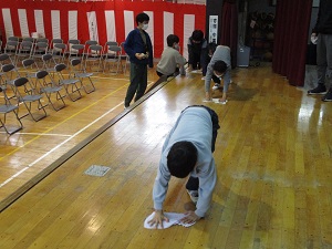 週末です。教室をのぞくと、算数の復習やテスト直し、問題練習に取り組んだり、1年間の振り返りをしていたりと残りわずかな時間を有効に使っていました。今日の5時間目は一斉に大掃除です。でも、1年生は4時間目から少しずつ大掃除を進めていました。机の脚をきれいにしている写真がそれです。後半の写真は、大掃除の様子です。1年間お世話になった教室を、普段掃除が行き届かないところまできれいにしました。子供たちは、次に使う学級が気持ちよく過ごせるようにという思いでがんばっていました。よく働きました!残すところ1~4年生は3日間、5・6年生は4日間となりました。大事に大事に過ごしてくださいね。