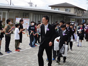 令和4年度修了式が行われました。コロナ禍により制限がかかった中での教育活動でしたが、感染症対策をとりながら少しずつできることを増やしきた1年でした。マスクの緩和もあり、令和5年度は大きく変わっていくでしょう。修了式の児童代表の言葉は、1年生と5年生。2人とも緊張していましたが、読み始めると大きな声で堂々と発表することができました。放送越しですが、大きな拍手をもらいました。そして、あっという間の下校です。あいにくの雨でしたが、校長先生が校門で見送りをしながら子供たちに声かけていました。次に登校するのは、4月です。短い休みですが、体調をくずさないよう、交通事故にあわないよう、そして次の学年への期待に胸を膨らませながら過ごしてほしいと思います。そして、5年生は明日の卒業式へ向けてもうひと踏ん張り。式場や玄関、6年生や保護者の皆様が通る通路などを、ていねいに掃除してくれました。5年生、よく働きます。立派!5年生の皆さん、ご苦労さまでした。さあ、明日は卒業式。ゆっくり寝て、すっきりした顔で晴れの日を迎えてください。