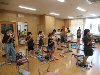 5年生 音楽 合奏の基本になるメロディを鍵盤ハーモニカで練習しました。難しい部分もありますが、繰り返し練習し、上達を目指します。鍵盤系の楽器を希望する人は夏休みの宿題にもなっています。