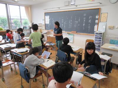 4年生 国語 「新聞を作ろう」の学習です。インタビューを終え、いよいよ仕上げの作業に入りました。完成が楽しみです。