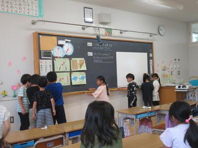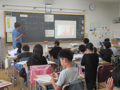 3年生 外国語活動 意欲あふれる3年生、代表で発表したいという人が今日もたくさんいました。元気な声と表情から楽しく学んでいる様子が分かります。