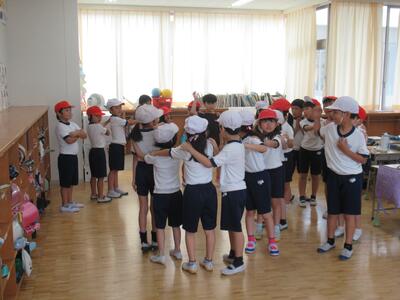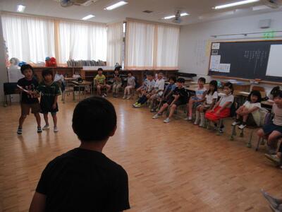 2年生 体育 小雨が降っていて校庭には出られませんでしたが、室内で簡単なゲームなどをして少しだけ体を動かしました。