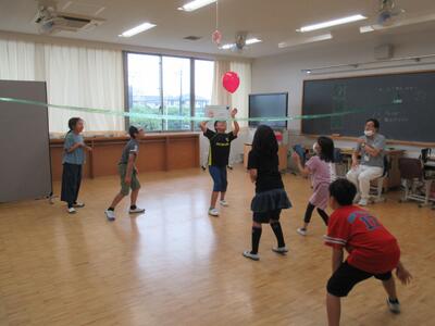 にじ組 自立活動 風船バレーボールで盛り上がっていました。協力、勝敗の受容などを学びます。