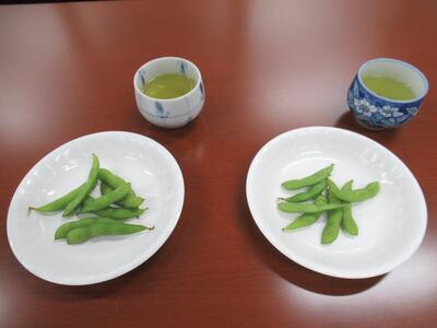にじ組 5年生が育てて収穫した枝豆をゆでて校長室に届けてくれました。塩加減もバッチリで、新鮮かつ旬の豆の味がとてもおいしかったです。ごちそうさまでした。
