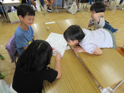 1年生 「夏の思い出すごろく」をグループごとに楽しみました。