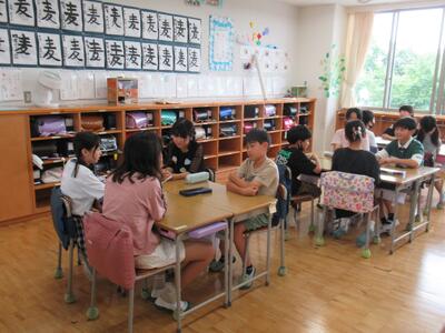 4年生 席替えをした後、新しいグループの名前を考えていました。