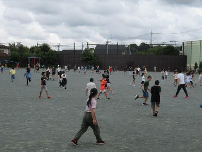 中休み 休み明け初日から外で元気に遊ぶ姿が見られました。台風のせいか、湿度は高いものの、気温はそれほどではありませんでした。