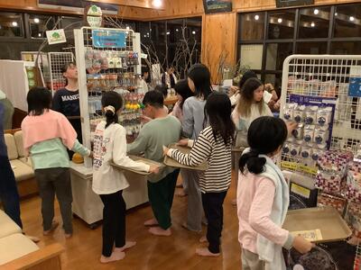 5年生 お土産、お風呂、振り返りの3つを時間をずらして行いました。家族の顔を思い浮かべてお土産を買う様子がとてもかわいかったです。室長会議が終わったら、間もなく消灯です。