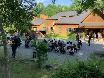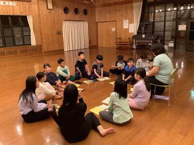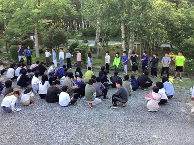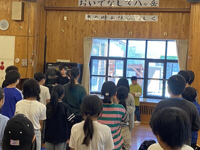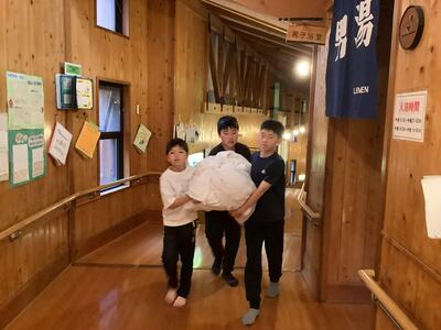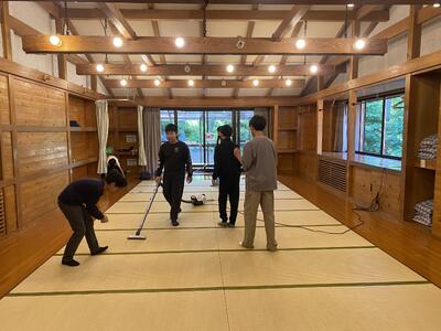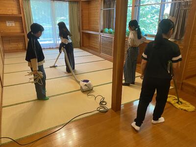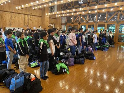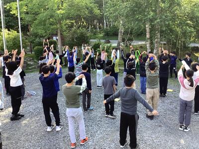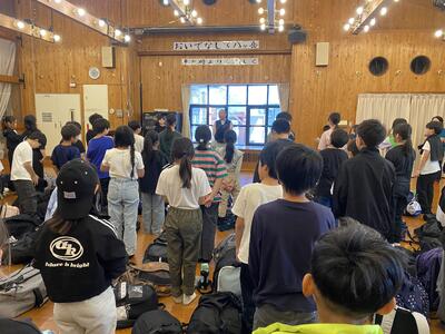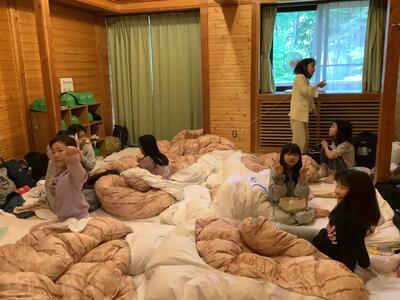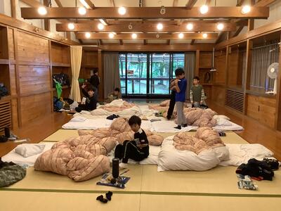 5年生 おはようございます。2日目の朝です。快晴です!大きく体調を崩している児童はいません。随分、早くから起きていた人もいたようです。起床し、健康観察を行いました。協力して布団を片付けます。