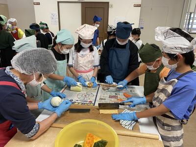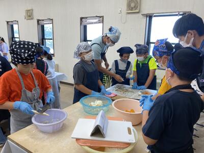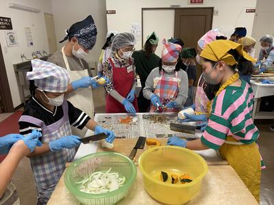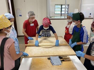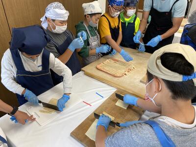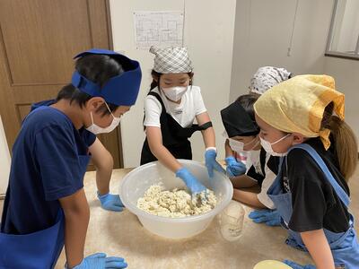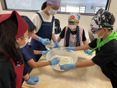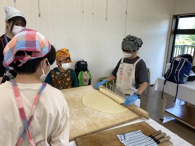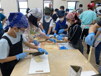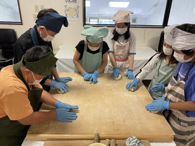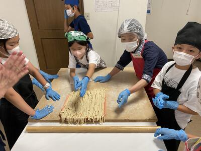 5年生 ようやく食べ始めました。。一生懸命に楽しくほうとうを作っていたら、本来であれば出発しなければならない時間になってしまいました。