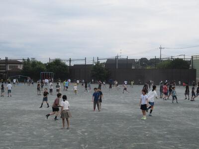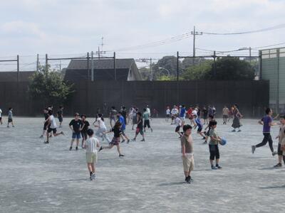 中休み 熱中症指数がそれほど高くなかったので、校庭に出て遊ぶ人が多かったです。