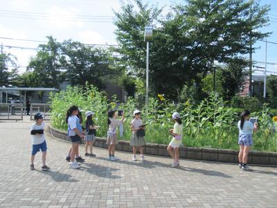 3年生 理科ではひまわりなど夏の植物の様子を観察していました。