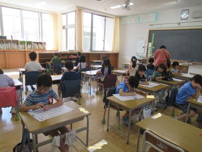 1年生 7月までに習ったカタカナのテストをしました。長い休みをはさんだこともあり、苦戦していました。