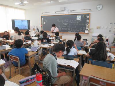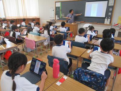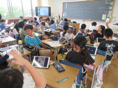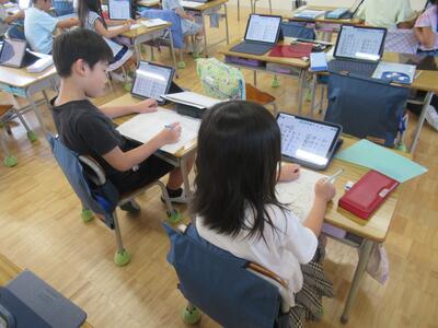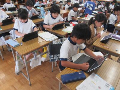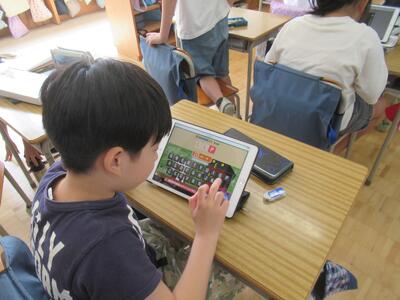 3年生 国語ではタブレットを使って、ローマ字打ちに挑戦しました。