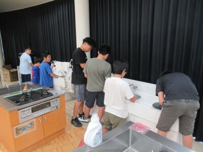 にじ組 家庭科の洗濯実習では靴下の手洗いを行いました。