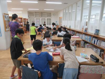 4年生 図書室では本の返却、貸出の後、個々に読書を楽しみました。