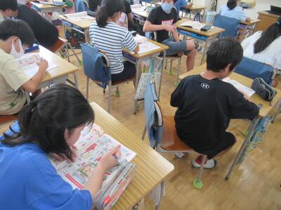 5年生 国語では全国版と地方版の新聞記事の違いやその理由について考えました。