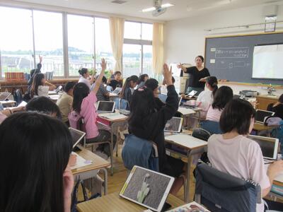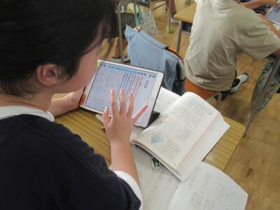 1年生 タブレットを使って、前期の振り返りを行いました。