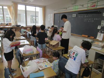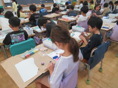 2年生 図工では「ともだちハウス」に登場する「小さなともだち」作りをしました。